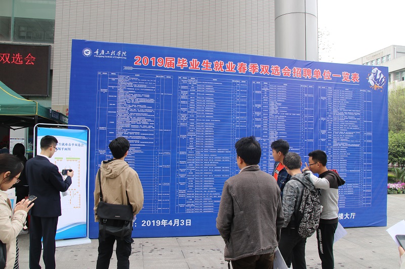 本网讯(文/党委宣传部,图/大学生记者团)4月3日下午,重庆工程学院2019年春季校园双选会在南泉校区大学生服务中心大厅顺利举行,重庆两江新区建设有限公司、360企业安全技术集团、重庆光大网络有限公司、重庆啤酒股份有限公司等60家招聘单位,提供了共1323个就业岗位,涉及22个专业。现场600多名未就业毕业生参会,共投递简历921份。