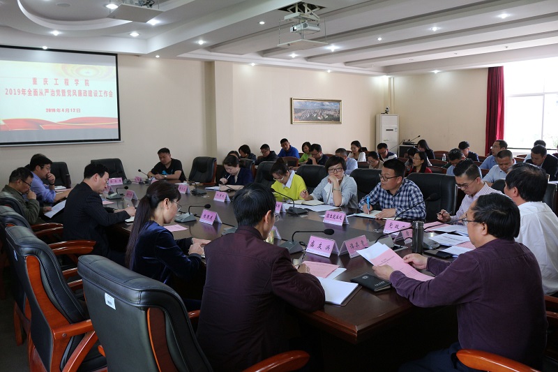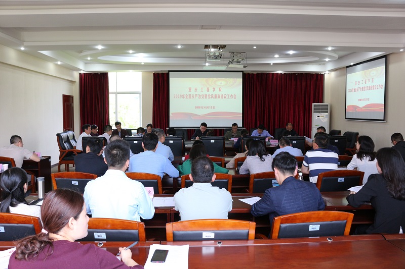 本网讯(文/党政办 杨柳 图/大学生记者团)为深入贯彻落实十九届中央纪委三次全会、五届市纪委三次全会和全国全市教育系统全面从严治党工作视频会议精神,研究部署重庆工程学院2019年全面从严治党及党风廉政建设工作,推进学校全面从严治党向纵深发展,2019年4月12日,学校召开了2019年全面从严治党暨党风廉政建设工作会议,全体校领导出席会议,校纪委委员、副处级以上干部参加会议,会议由党政办主任甘永诚同志主持。