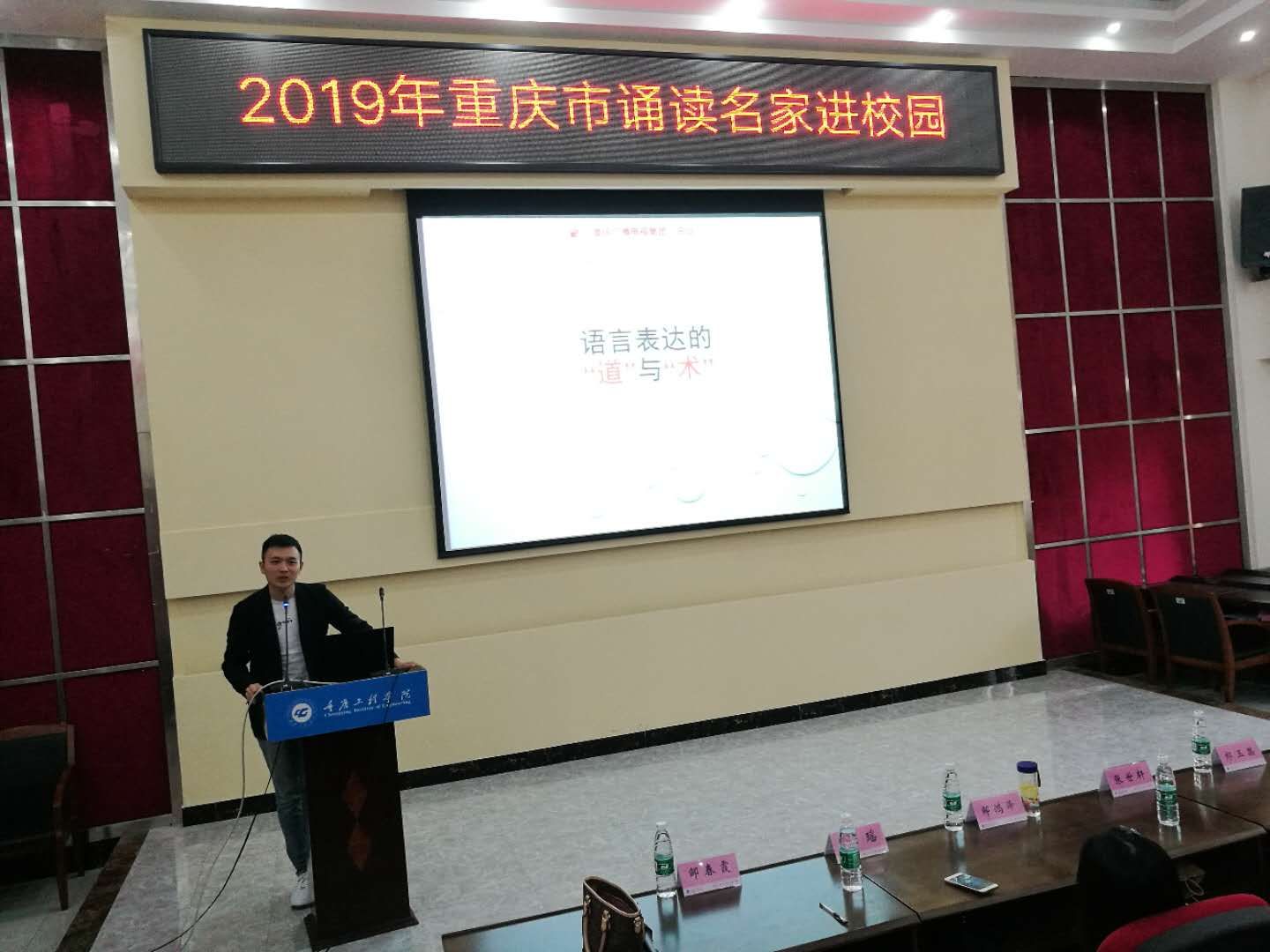 本网讯(语委办 邹春霞)为传承中华优秀传统文化、提高当代大学生诵读水平,重庆市语言文字工作委员会、重庆市教育委员会共同主办了2019年“诵读名家进校园”系列活动。