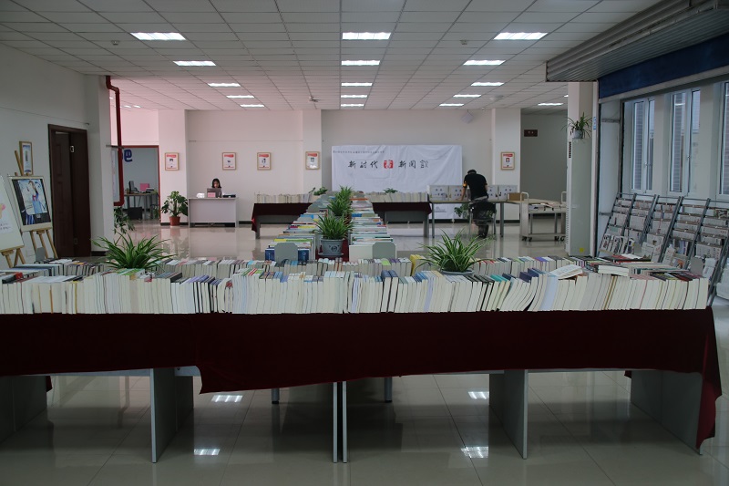 当天上午,图书馆2号门外布置了6个“校园网络数据库”宣传展台,现场工作人员主动向读者介绍图书馆内的网络数字资源,体验数字阅读。馆内一楼大厅内举行了主题为“你选书我买单”的精品新书展,人民文学、作家、科学、清华、人民教育、人邮、机械工业、建筑工业等各大出版社近年最新出版图书纷纷亮相。此外,活动现场还准备了主题签名墙,校内师生进馆后可以在名为“新时代·新阅读”的主题墙上签下自己的名字,读者们在阅览书籍的同时还能体验图书采访、编目、加工等全过程。据悉,当天有近千名读者现场参与,“周末影院”手绘海报展也同步进行。