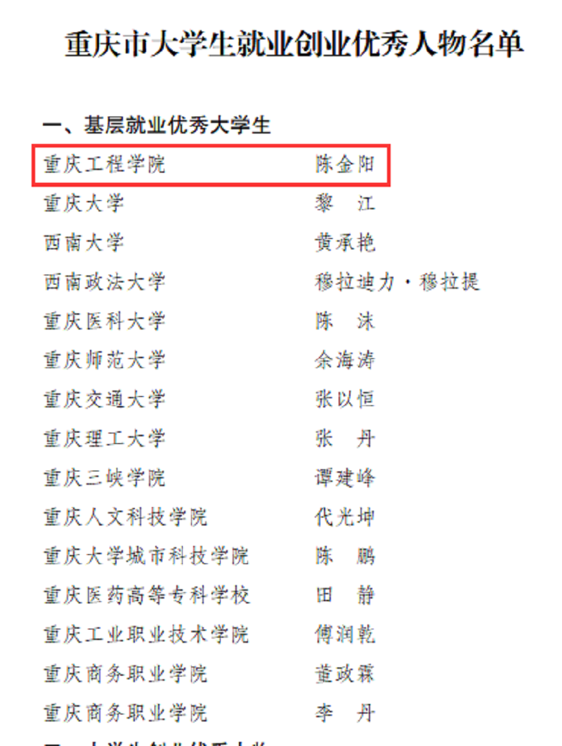 据悉,重庆市教委此次共遴选出45名大学生就业创业优秀人物,此次评选旨在宣传各大高校优秀人物事迹,以此来正面引导广大高校学生,鼓励大学生积极投身创新创业实践,进一步提升自身综合素质能力。