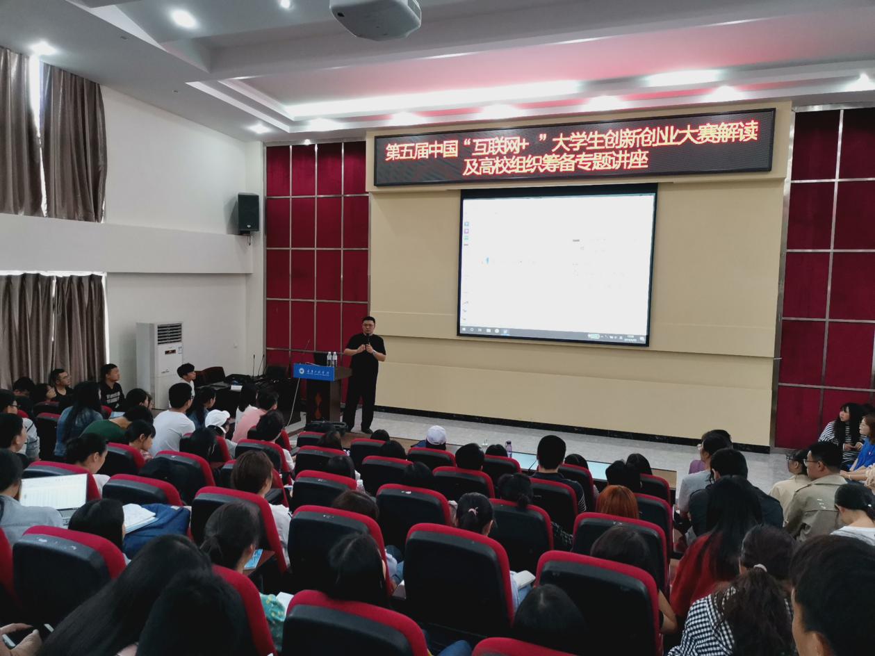 本网讯(文、图/ 创新创业园於欣怡)为提高我校参加第五届“互联网+”大学生创新创业大赛的质量和水平,帮助参赛学子在大赛中有更好的表现,5月22日下午,第五届“互联网+”大学生创新创业大赛解读及高校组织筹备专题讲座在行政楼阶梯报告厅顺利举行,250余名师生代表参加本次讲座。
