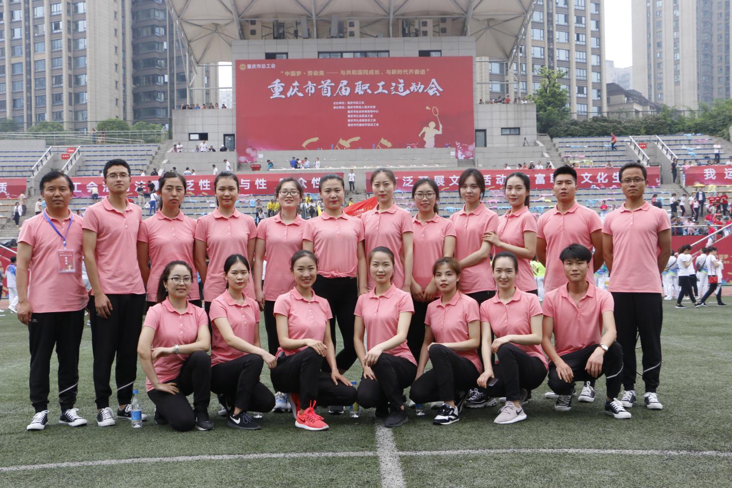 本网讯(文/校工会 熊力 图/校工会 向建)为庆祝新中国成立70周年,深化“中国梦·劳动美”主题实践活动,展示全市职工风采,5月25日,由重庆市总工会举办的重庆市首届职工运动会在江北区石子山体育场举行。我校代表队在工会主席唐小勇的带领下,同全市各区县、市直机关和市级产业工会的113个参赛单位队伍的2000余名职工一同参加了开幕式。