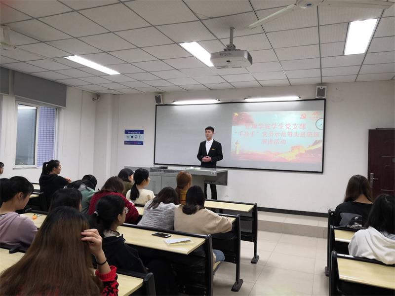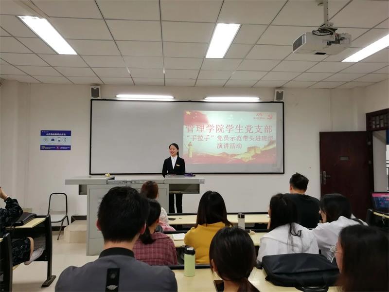 这是管理学院学生党支部“手拉手”党员示范带头进班级活动的现场。为了把党性教育和素质教育结合起来,发挥党员的先锋模范作用,帮助低年级同学们树立崇高理想信念,2018年9月,管理学院党总支出台了《“手拉手”党员示范带头进班级活动实施方案》,组织高年级学生党员送党课进课堂,在学生中赢得了广泛称赞和追捧,而这种形象生动的党课形式,也被学生们誉为“真人版微党课”。