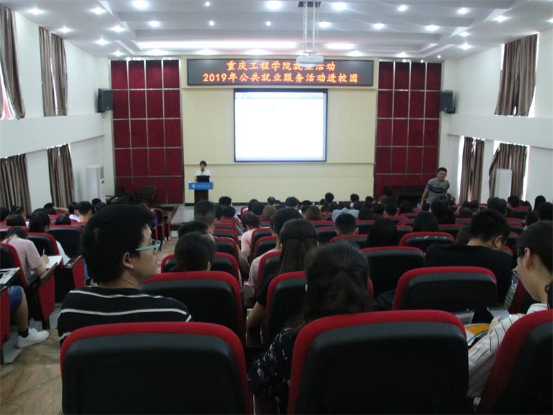 本网讯(文/招就处杨军 图/大学生记者团 胡鹏)为贯彻落实全国就业创业工作暨普通高等学校毕业生就业创业工作电视电话会议精神,做好2019届在校大学生就业服务工作,6月5日下午,由重庆市人力资源和社会保障局主办,重庆市就业服务管理局、重庆工程学院承办的2019年高校毕业生就业宣传服务活动在重庆工程学院阶梯报告厅成功举行,学校270余名师生参加了本次活动。