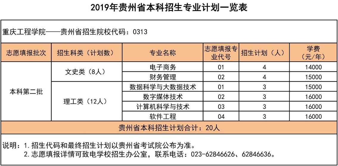 2019年贵州本科招生专业计划