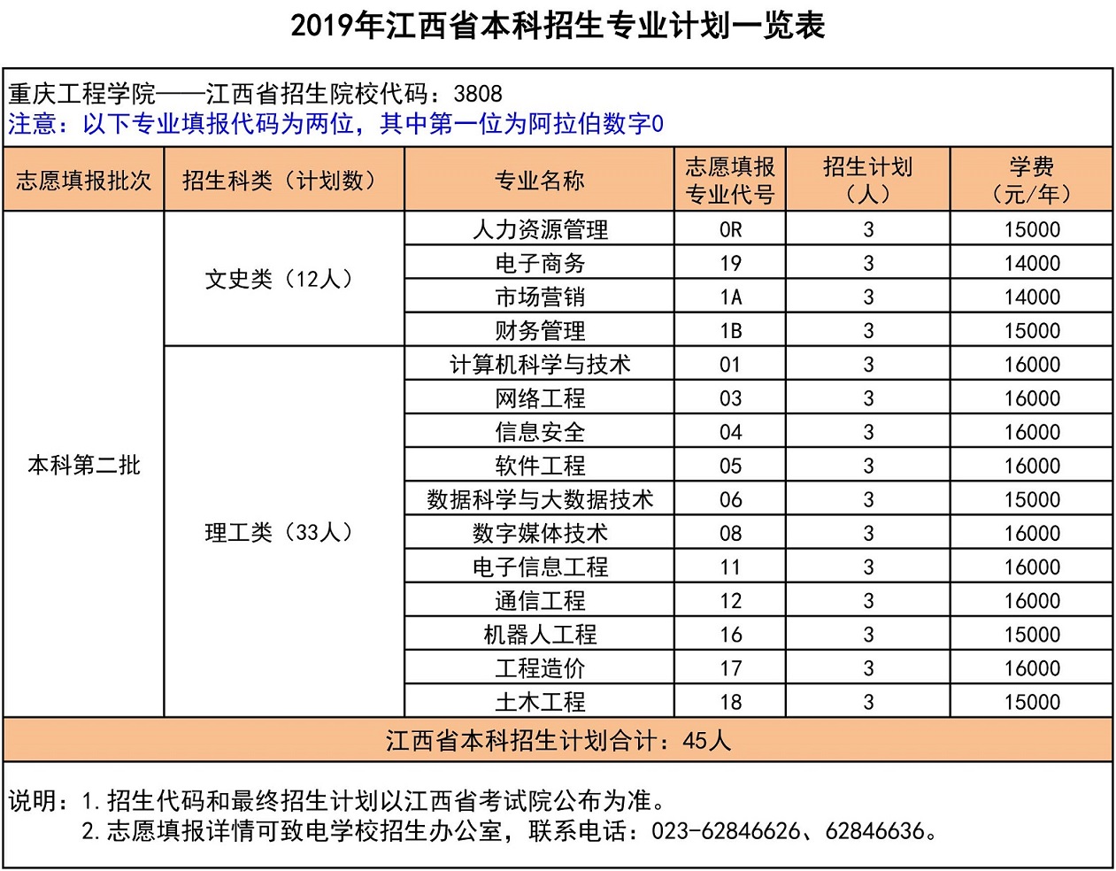 2019年江西本科招生专业计划