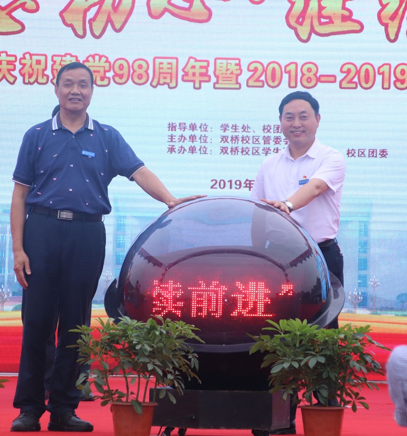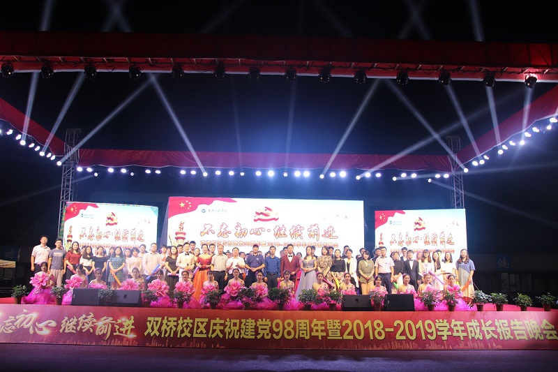 本网讯(文/图 刘琳靖)为庆祝建党98周年,同时展示双桥校区学子成长风采,6月25日晚,双桥校区在校区田径运动场举行庆祝建党98周年暨2018-2019学年成长报告晚会,为校区全体师生送上一份视觉饕餮盛宴。