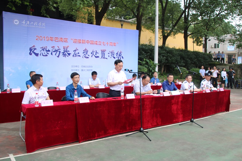 本网讯(文/罗心智 图/大学生记者团 陈奥林 邵宇)为落实中央、市委、市政府和区委区政府有关反恐防暴工作的指示精神,切实提高区反恐防暴应急处置能力和水平,6月26日,2019年巴南区“迎接新中国成立七十周年”反恐防暴应急处置演练在我校举行。