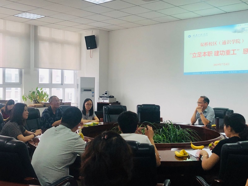 本网讯(文/图 双桥综合事务办公室 王瑜琳)为加强团队凝聚力,提升教职工的荣誉感,营造良好的爱校氛围,7月4日上午双桥校区在行政楼第三会议室召开“立足本职 建功重工”恳谈会。