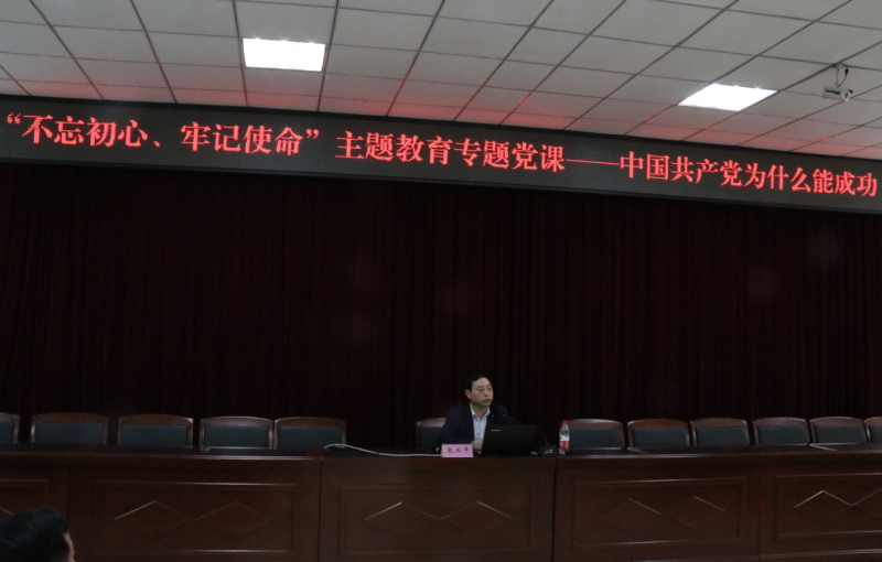 本网讯(文/党委宣传部 图/大学生记者团 袁艺谋 谭君容)根据学校“不忘初心、牢记使命”主题教育的部署和要求,10月30日下午,我校在南泉校区六教6302教室举办“不忘初心、牢记使命”主题教育专题党课,校党委书记张业平以“中国共产党为什么能成功”为题,给全校400余名师生党员代表上了一堂深刻而生动的党课。学校校级领导,中层干部,党务干部参加,校纪委书记、工会主席唐小勇主持。