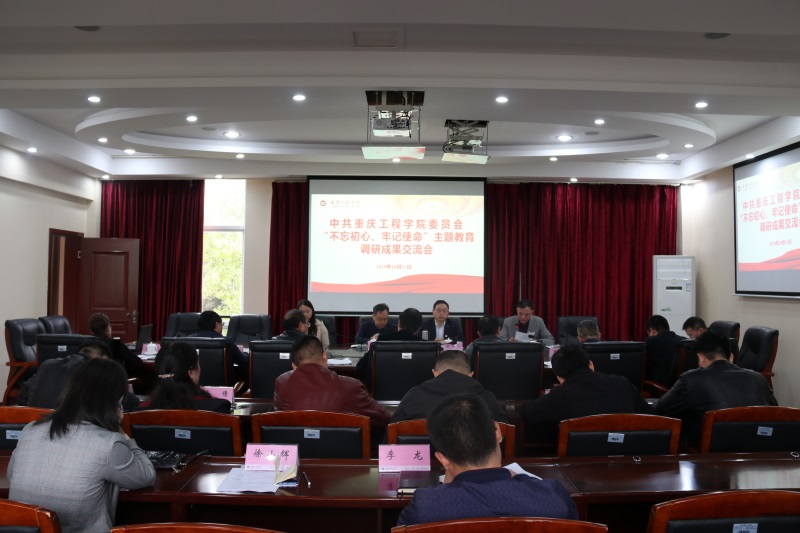 本网讯(文/党委宣传部 图/大学生记者团 袁艺谋)10月31日上午,重庆工程学院“不忘初心、牢记使命”主题教育调研成果交流会在南泉校区行政楼二会议室举行。市委教育工委指导一组组长、市教委基建后勤处处长胡斌、指导组成员胡盼,学校校级领导班子成员,二级学院党总支书记、直属党支部书记及职能处室负责人参加,会议由校党委书记兼常务副校长张业平主持。