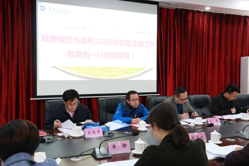 本网讯(文/教务处 胡冬梅 图/大学生记者团 钱妮琳 谭鑫)11月18日下午,西南大学教务处副处长张代平、重庆师范大学教务处副处长夏睿、重庆医药高等专科学校教务处处长兰作平、重庆电子工程职业技术学院学籍科科长邓飞莅临我校,检查2019年学籍注册工作情况。学校校长助理简玉刚、教务处处长李静、副处长赵友贵、学工部部长黄燕、财务处处长朱倩、招生办付关美等参加了检查汇报会。