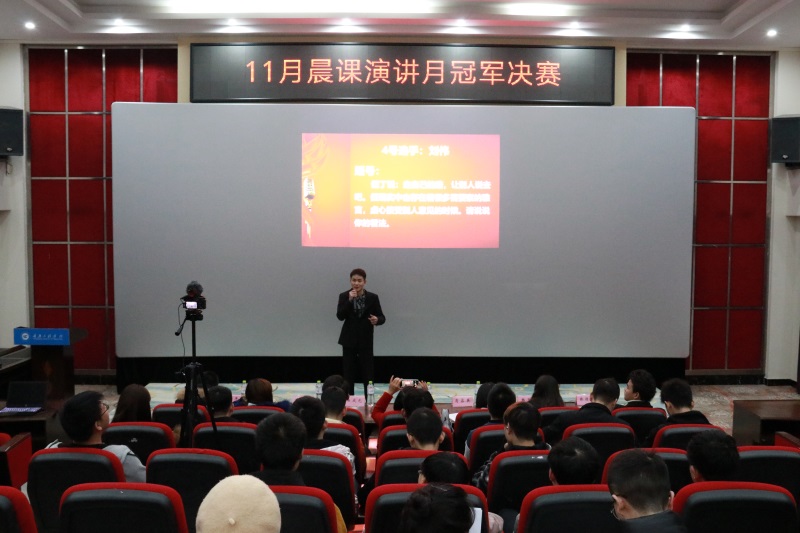 本网讯(文/素质教育中心 牛婷 图/大学生记者团 田甜)11月27日下午,重庆工程学院“11月晨课演讲月冠军决赛”在行政楼报告厅拉开序幕,共有来自不同学院的14名参赛选手共同站在讲台上一决高下,此次比赛由素质教育中心邹春霞教授和各个学院优秀助教共同担任评委。