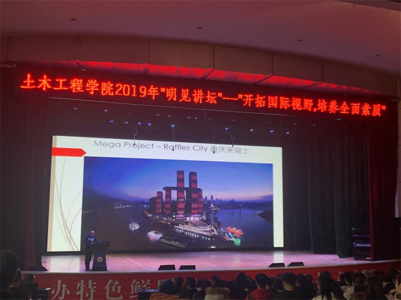 本网讯(文/土木工程学院 毛云莹 图/木工程学院大学生新闻中心 王玉玺)11月27日下午,新加坡凯德集团项目总经理、新加坡国立大学土木工程硕士、新加坡工程师协会会员杨琦莅临我校,举办了一场名为“开拓国际视野,培养全面素质”的专题讲座。讲座在南泉校区学术报告厅举行,这也是我校土木工程学院2019年“明见讲坛”讲座活动,土木工程学院办公室主任毛云莹担任主持,学院部分教师代表,2017、2018级全体学生参加。