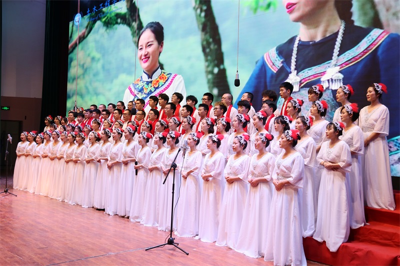师生同台齐唱,用飞扬的歌声吟唱着难忘岁月,用熟悉的旋律演绎着时代激越。最后,由来自双桥校区的陈军老师演唱一首《映山红》,歌声悠扬婉转,给观众们带来了一场视听盛宴。