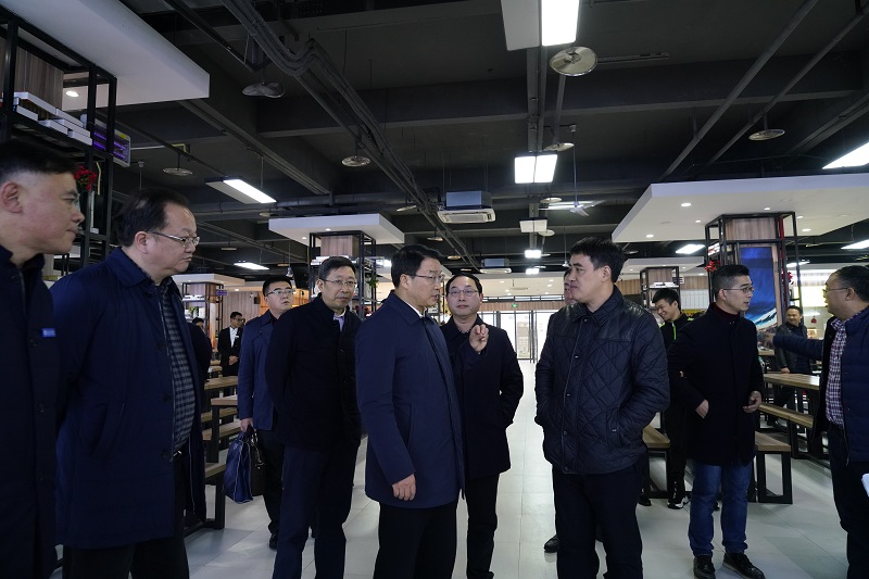 李明清一行首先来到重庆工程学院创新创业园,参观了学校与阿里巴巴集团共建的阿里巴巴新零售人才孵化基地。听取了基本介绍后,李明清详细询问了基地的合作模式,并与学生亲切交谈,了解他们在基地的工作情况。李明清表示,重庆工程学院的专业设置和重庆产业结构贴合得很紧,符合地区产业发展需求。