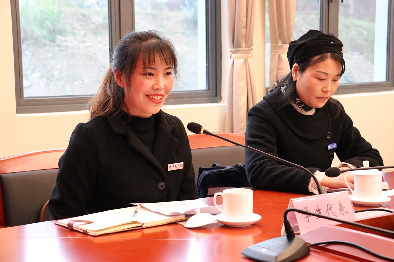 紧接着,学院教师代表但秀丽和学生代表谭曾洪分别发言。但老师谈到,做一名“四有”好老师和优秀的教师党支部书记是她来到学校后一直坚持的目标,她深信,“只有教师优秀了,才能培养更好的学生。”