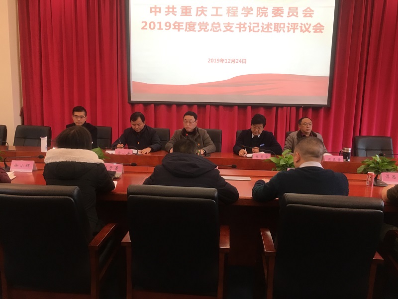 本网讯(文/图 组织部 谭军)为切实抓好基层党组织书记述职评议考核工作,根据《中共重庆市委教育工作委员会关于开展2019年度高校和直属单位党组织书记抓基层党建述职评议考核工作的通知》(渝教工委〔2019〕117号)要求,12月24日下午,学校各二级学院党总支书记述职评议会在办公楼第五会议室举行。学校党委书记张业平,党委委员、副校长程昌华,党委委员、纪委书记唐小勇,党委委员、校长助理谭其贵出席,各党总支书记和师生党员代表共40余人参加,会议由党委组织部部长甘永诚主持。