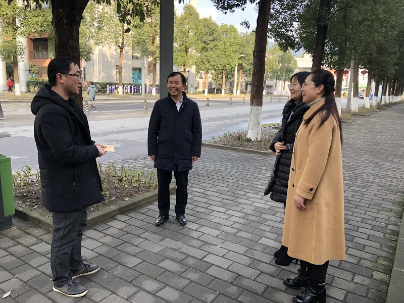 本网讯(文/图 校工会 骆思琪)新春送祝福,慰问暖人心,1月11日上午,学校副校长王琼花,纪委书记兼工会主席唐小勇,重庆市教科文卫体副主席、校长助理李沁阳,校工会副主席熊力一行对我校困难教职工进行了岗位走访慰问,并代表学校为他们送去了新春慰问金。
