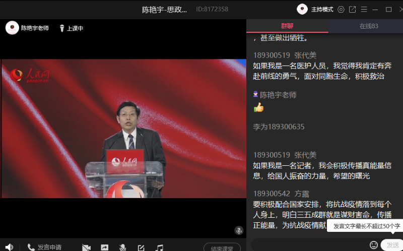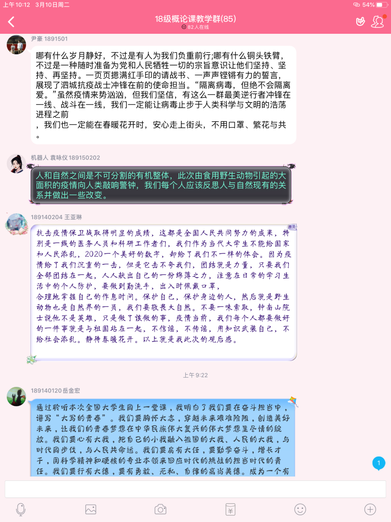 老师和同学们对四位专家的讲授给予了高度评价,认为讲座整体脉络清晰、层层剖析、有全局有聚焦,时间上有横有纵、既高屋建瓴又下接地气,讲道理与摆事实完美结合,整篇节奏把控感很好,是一场有理论高度、思想深度、现实维度、情感温度的思政大课。大家通过在线课堂的qq群、微信群等进行深入热烈探讨,集思广益,感受颇丰。