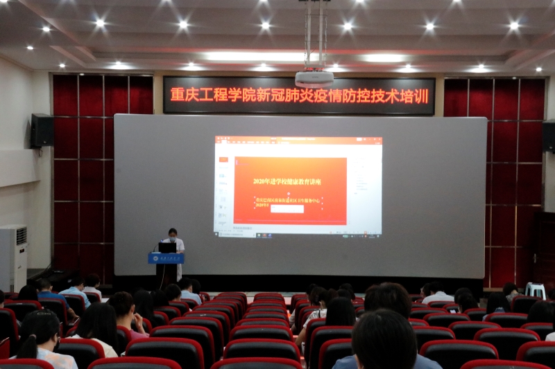 本网讯(文/学生处唐蕾 图/党委宣传部)为进一步做好新冠肺炎疫情防控工作,加强全校教职员工应对疫情防控的知识技能学习,5月9日上午,重庆市巴南区第四人民医院公共卫生科医生胡君伟应邀来到我校,为全校教职员工进行疫情防控知识技术专题培训,培训活动由学生处处长黄燕主持。本次培训采用“线上+线下”相结合的方式进行,各二级学院党总支书记、学工办主任、全体辅导员、学生工作处、团委、素质教育中心全体人员集体赶往南泉校区阶梯会议室参加现场培训,其余教职员工则通过线上直播方式观看培训视频。