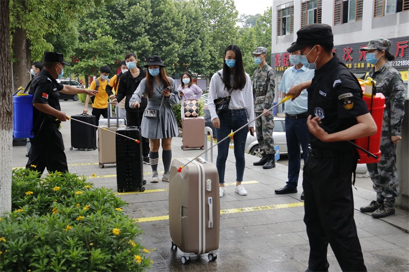 本网讯(文/党委宣传部 图/大学生记者团田慧婷 谢家乐)5月13日,初夏里的重工天朗气清、惠风和畅,南泉校区迎来了毕业年级学生集体返校,那些背着背包、拖着行李的青春身影为久寂的校园增添了新的生气。学校在重庆北站北广场、重庆西站、南坪四公里设置了接待点。上午11点半左右,第一辆来自重庆西站的接驳车停驻校门口,二十几名学生下车后依次排好队走进校门口的测温通道。为了这一天的到来,学校已经提前准备了两个多月,从对管理制度的反复推敲到返校方案的多次修改,从摸排在家学生健康状况到检查校内各项准备设施,从开展疫情防控应急演练到做好防疫物资筹集发放,一系列的细致工作都见证了学校对同学们安全、顺利返校复课的殷切期盼。