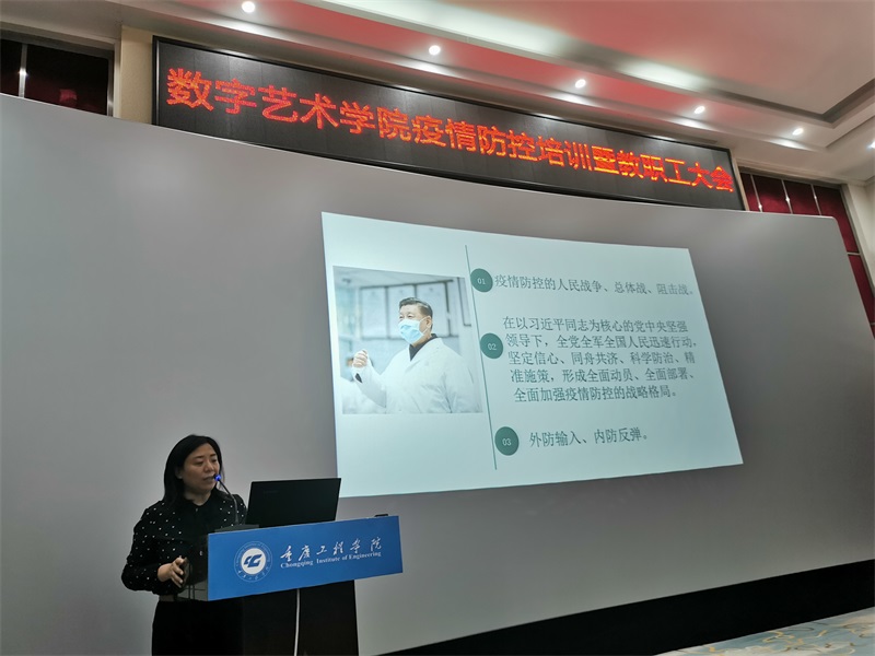 党总支书记徐小辉以“在抗疫阻击战中,我们应如何发挥作用”为主题作了专题培训,分析了全球各国的疫情现状和国内疫情防控总体形势,并总结了我国防疫工作取得的显著成绩。她提出,学院教师要从国家、学校、个人层面明确工作职责,提高政治站位,严肃防疫工作纪律,联防联控,相互协作坚决打赢校园防疫阻击战,圆满完成学校各项工作。