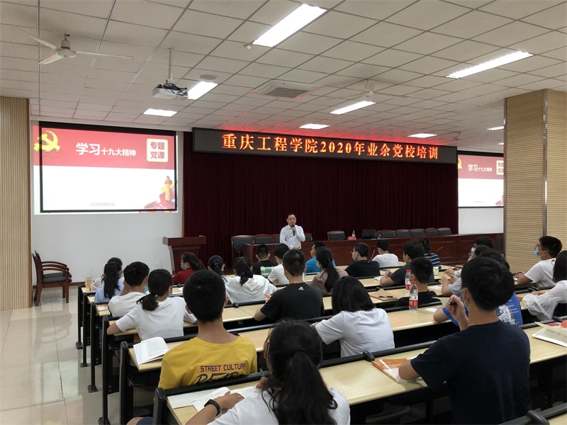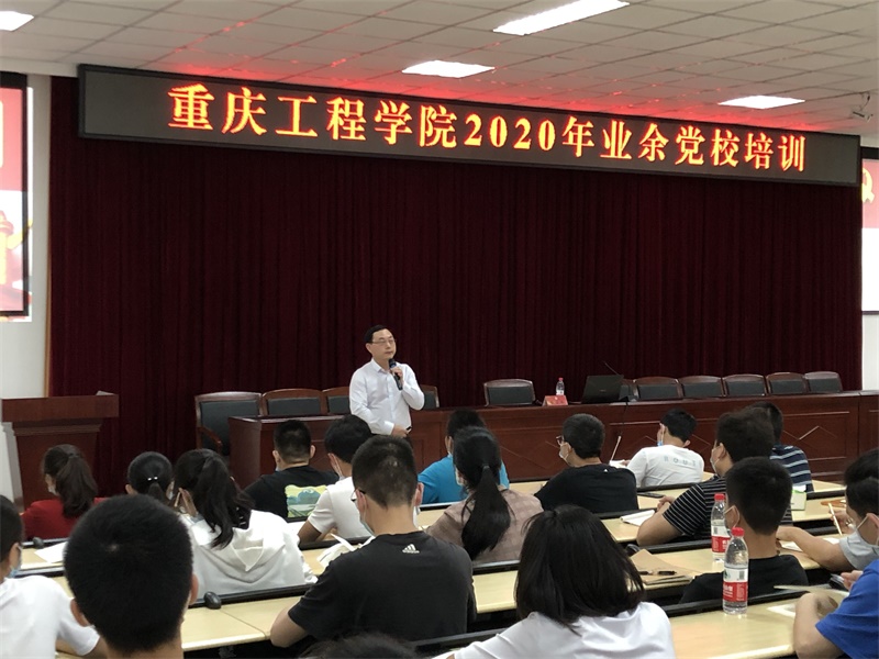本网讯(文/图 党委组织部 谭军)6月3日晚,重庆工程学院党校举办了2020年上半年业余党校培训班,深入学习贯彻习近平新时代中国特色社会主义思想。校党委副书记兼常务副校长张业平同志担任主讲,全校预备党员和党员发展对象共计200余人在南泉校区6教302报告厅参加学习。