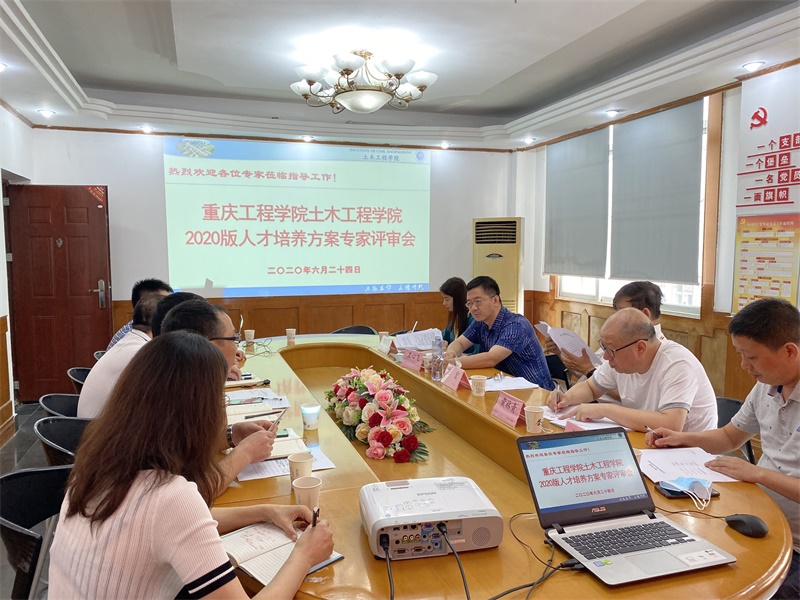 本网讯(文/图 土木工程学院汪金能)为进一步加强专业建设,提升人才培养质量,6月24日上午,土木工程学院组织召开了2020版本科专业人才培养方案评审会。会议邀请到重庆科技学院建筑工程学院原院长黄林青教授,重庆高速路投资集团工程部副主任、教授级高级工程师王心飞,重庆工商大学艺术学院雍建华教授,重庆市设计院高级工程师谢丽娜担任评审专家。重庆大学建设管理与房地产学院原院长、重庆工程学院土木工程学院院长任宏教授担任专家组组长,土木工程学院执行院长雷江、副院长汪金能、朱曲平带领学院各系部负责人参加了会议。