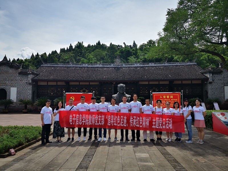 本网讯(文/图/电子信息学院郭晓伟)7月18-19日,电子信息学院教师党支部开展了“追寻红色印记,传承红色精神”建党99周年主题党日活动,全体党员来到杨尚昆纪念馆、杨闇公革命烈士陵园,重温了入党誓词,举目瞻仰革命先驱的卓立伟功,深情缅怀革命烈士的不朽精神。