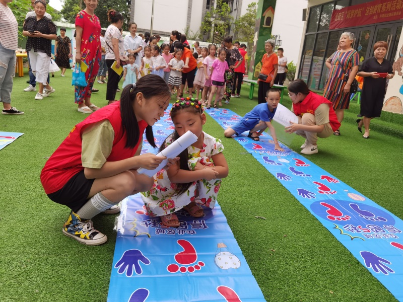 8月18日,在团北碚区委的指导下,“三下乡”团队在北碚区东阳街道开展“法制教育进校园”的《民法典》宣传活动,通过集中讲解、知识问答、互动游戏、VR模拟体验等形式来开展学习活动。为了能达到深入、全面、立体的普法宣传效果,社会实践团在北碚区的七个街道进行了为期两周的《民法典》宣传,增强了当地群众学习《民法典》内容的主动性。