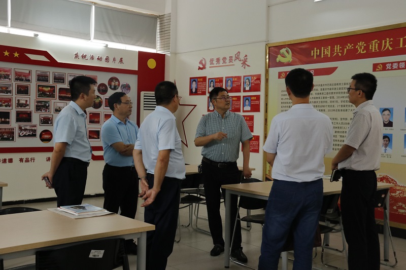本网讯(文/党政办 图/大学生记者团谢家乐)9月10日,重庆市委教育工委委员、重庆市教委专职督学莫龙飞来到我校专程调研意识形态工作,同行的还有重庆市教委宣教处副处长钱程、市教委督导室副主任邱小红、市政府教育督导室干部赵勇等。我校党委书记兼督导专员谭明术、党委副书记兼常务副校长张业平、党委职能部门负责人、各二级学院党总支书记陪同参加了调研活动。
