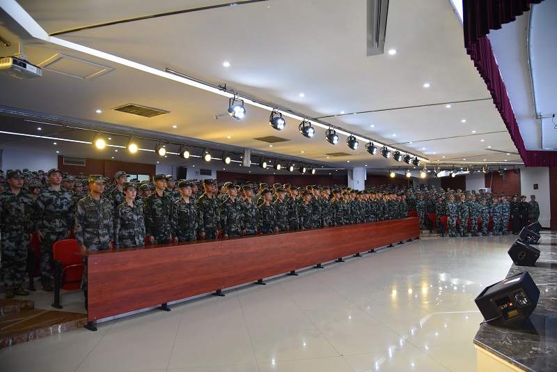 党委书记谭明术宣布了2020级新生军训开训,并向2020级新生表示热烈的欢迎和衷心的祝贺,向来校开展军训的全体军官致以崇高的敬意和诚挚的感谢。谭书记希望2020级全体新生,要认真学习军人的光荣传统和优良作风,要在军训中严肃军训态度,严正军容风纪,严谨施教施训,严格军训考核,以饱满的热情投入军训,使军训成为每个人迈入大学生活中最坚定、最扎实的第一步。