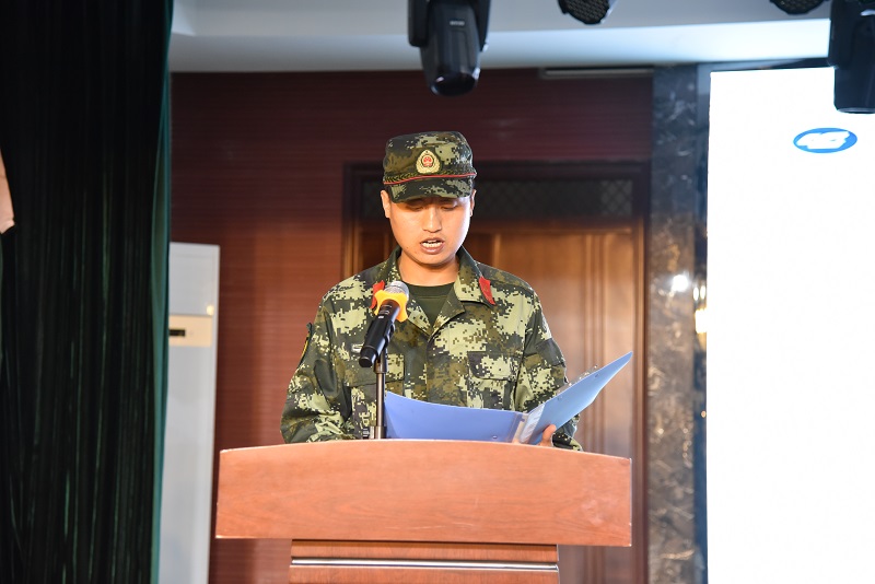 2020级新生柏微、教官唐春胜分别代表全体新生和训练教官进行发言,军训团王宪文中校向参训学生及教官提出了要求,鼓励同学们以饱满的热情投入到接下来的军训生活中。