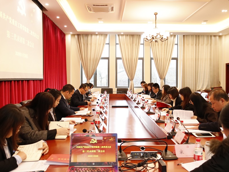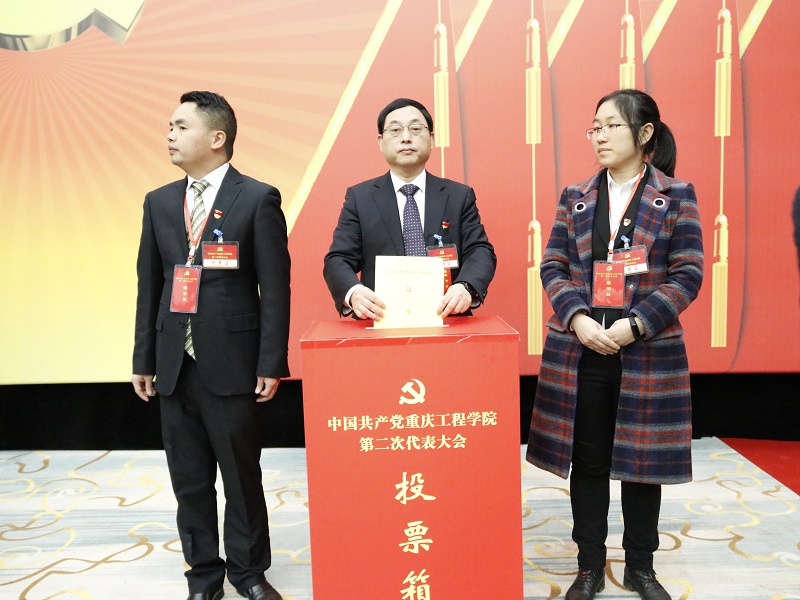 本网讯(文/党委宣传部 图/大学生记者团 袁艺谋 官成成 尚书宇 何华玲)11月27日、28日,中国共产党重庆工程学院第二次代表大会在南泉校区胜利召开。中共重庆市委教育工委专职副书记覃正杰、组干处四级调研员戴戈到会指导,重庆工程学院百余名代表出席了本次会议。大会审议并通过了重庆工程学院2020年党委、纪委工作报告决议,选举产生了新一届“两委”委员。