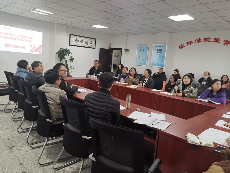 本网讯(文/图 软件学院 罗丽娟)12月4日下午,软件学院召开了2021届毕业生实习指导老师动员大会,会议由软件学院党总支书记刘子菱主持,校长助理王建东应邀出席并作工作讲话,软件学院党政班子和全体教师、辅导员参加。