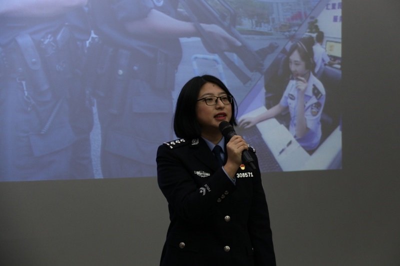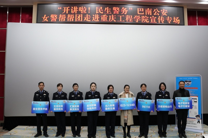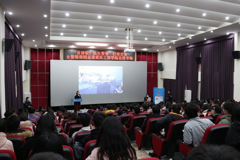 讲座中,巴南区公安分局交巡警支队警官孙江南、出入境管理支队警官刘黎楠、反诈骗中心警官王媛、民意监测中心警官陈娟、南泉派出所警官陈怡,分别就学校师生驾驶证考取、日常出入境手续办理、预防网络诈骗问题和意见反馈向同学们进行了常识普及。