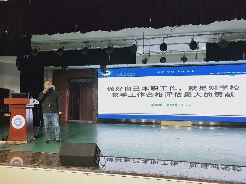 本网讯(文/图 双桥校区教学事务办 杨佳丽)为进一步做好本科合格评估工作,明确评估工作中的目标任务,引导全院教职员工全心投入本科教学工作合格评估工作中来,12月16日下午,双桥校区组织全体教职工在学术报告厅召开了本科合格评建工作培训会,会议由校长助理周龙福主讲。
