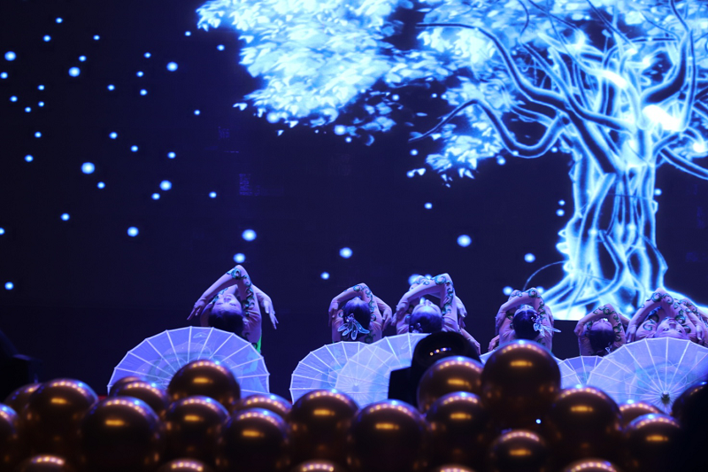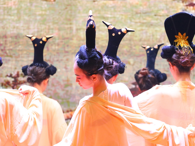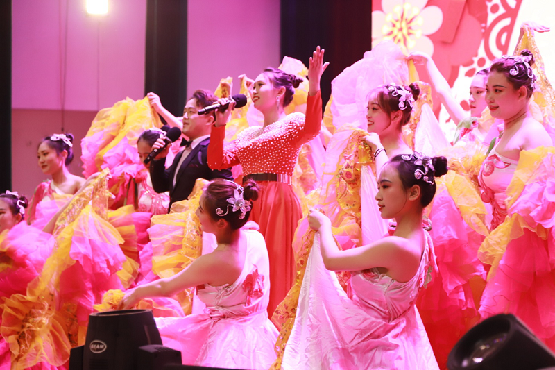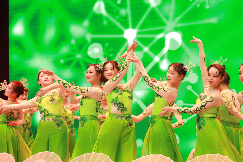 20级同学们表演的舞蹈《大唐古韵》,让观众们仿佛置身于盛世唐朝之中;计算机学院的同学表演的舞蹈《可可爱爱》、历任校园十佳歌手代表表演的魔幻情景小合唱《达拉崩吧》让观众们共同回忆童年时光的点点滴滴,国旗护卫队表演的现代舞《青春集合在国旗下》,更是将气氛推向高潮,赢得阵阵欢呼。