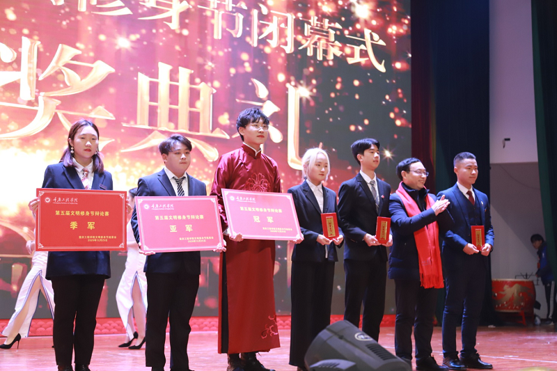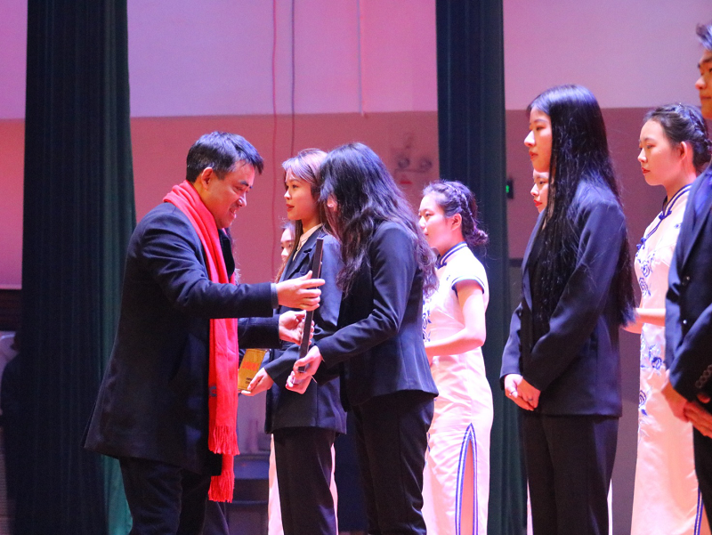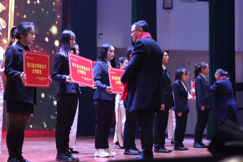 晚会上,学校领导还为在2020年中取得优异成绩的师生进行了集中表彰。学校党委副书记、常务副校长张业平为第五届文明修身节子项目获奖代表进行颁奖,校长桂国庆教授、党委书记谭明术教授为“文明寝室”代表颁奖,学校董事长王万均、董事李德志分别为师生合唱大赛获奖单位、我校荣获的重庆市普通高校文明寝室、文明公寓进行颁奖。