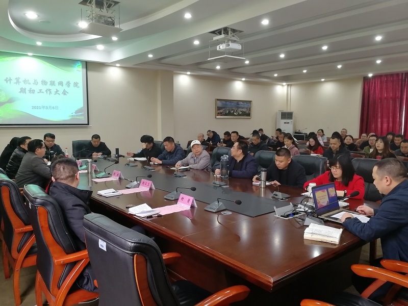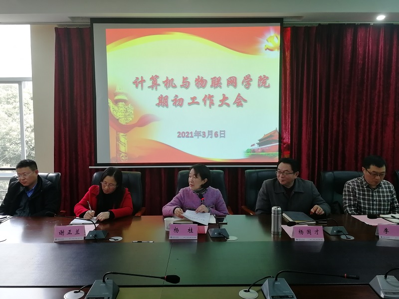 本网讯(文/图 计算机学院 罗桓)3月6日下午,计算机与物联网学院组织召开了2020-2021学年第二学期初工作会议,研究部署新学期工作。校长助理杨桂出席,学院领导及全院教职工参加,会议由党总支书记覃华伟主持。
