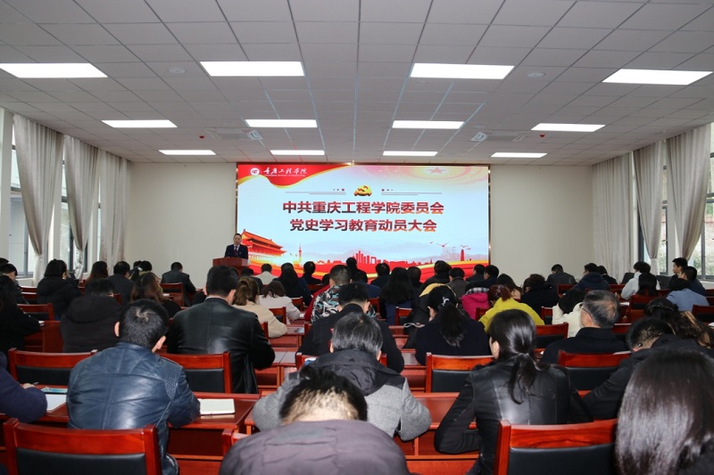 本网讯(文/党委宣传部 图/大学生记者团 李茜)为学习贯彻习近平总书记在党史教育动员大会上的重要讲话精神,认真落实党中央部署要求,深刻阐明党史学习工作的重要意义,3月10日下午,我校在行政办公楼第四会议室召开了中共重庆工程学院委员会党史学习教育动员大会,出席大会的校领导有校长桂国庆、党委书记兼督导专员谭明术、副校长蒋国华、纪委书记兼工会主席唐小勇、校长助理谭其贵、校长助理周龙福、校长助理王建东,学校副处级以上党员干部、党支部书记、专职组织员、教师和学生党员代表近百人参加。
