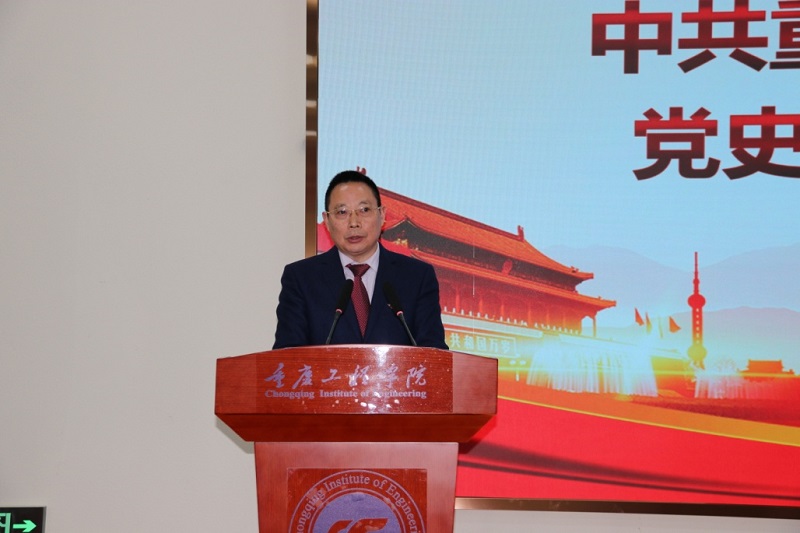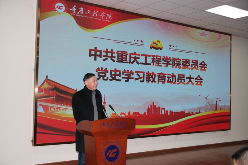 接下来,党委书记兼督导专员谭明术同志作了重庆工程学院党史学习教育工作动员讲话,谭明术指出,一是要提高站位,坚定信念,深刻认识开展党史学习教育的重大意义。党史学习教育工作是帮助共产党员牢记初心使命、践行“为人民服务”宗旨、提高应对风险挑战能力的重要举措,广大干部要通过学习党史来提高政治判断力、领悟力与执行力,做到不断自省与自我革新。