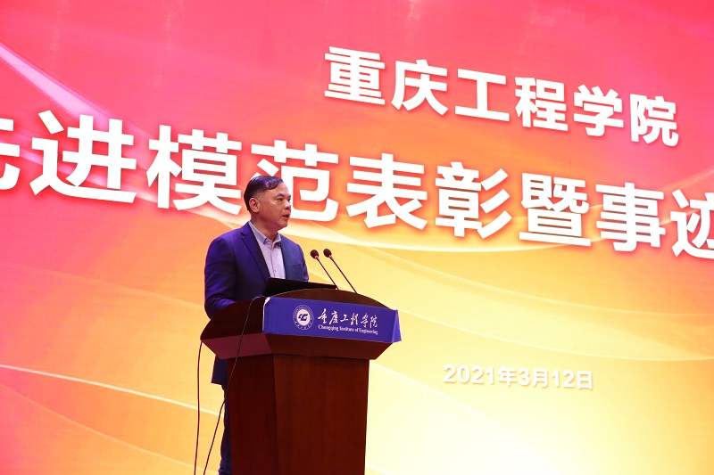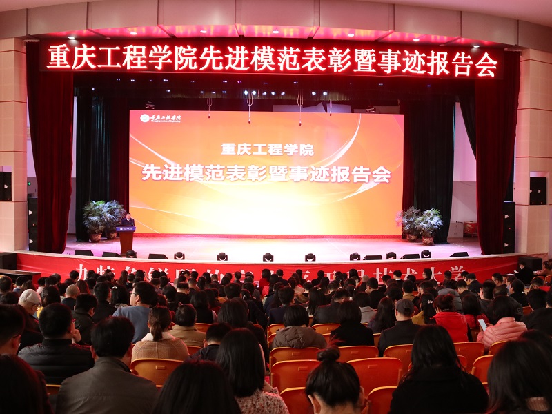 本网讯(文/教师发展中心 陈可 图/大学生记者团 袁艺谋 官成成)3月12日下午,重庆工程学院先进模范表彰暨事迹报告会在南泉校区学术报告厅举行。校长桂国庆,党委书记兼督导专员谭明术,副校长王琼花,副校长蒋国华,纪委书记兼工会主席唐小勇,校长助理谭其贵、周龙福、简玉刚、王建东以及受表彰的先进个人、教职工代表共计400余人参加,会议由唐小勇主持。