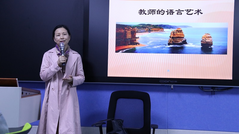 整场培训,骆教授用诙谐幽默的语言、流畅清晰的表达、寓教于乐的教学形式让老师们切身体会到语言的魅力,倾情演绎了一场生动有趣的培训,参训老师们全程积极融入课堂,互动热烈,获益匪浅。最后,参训教师代表在分享本次培训收获和感受时强调,自己在接下来的教学过程一定会将本次所学运用到自己的教学中,让教学语言更有魅力,课堂更加生动。
