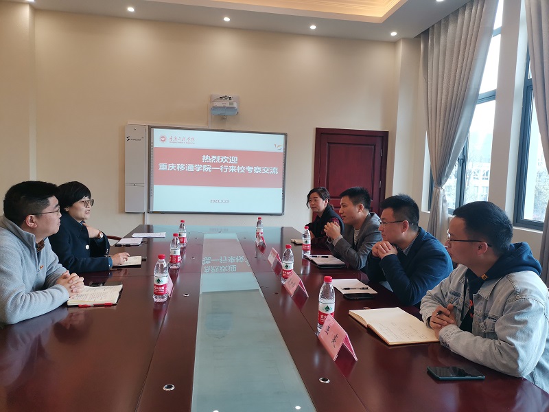 本网讯(文/图 学生处 熊佳)3月23日上午,重庆移动通信学院学生处副处长陈帅一行来我校考察调研,重点了解我校在双校区师生管理、学生培养等方面一些经验。我校学生处处长黄燕、电子信息学院党总支书记(原双桥校区党总支书记)谭思宇参加了会议。