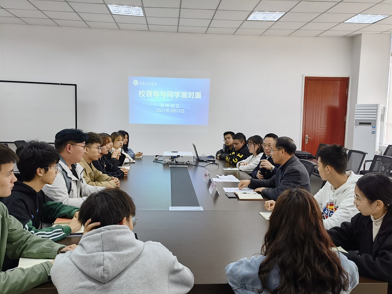 本网讯(文/图 通识学院 万乙豆)3月25日下午,校领导与双桥校区的同学举行了面对面交流活动,党委书记兼督导专员谭明术、副校长蒋国华接待了来自2020级各个学院的15位学生代表。