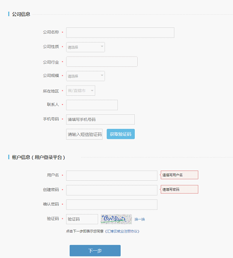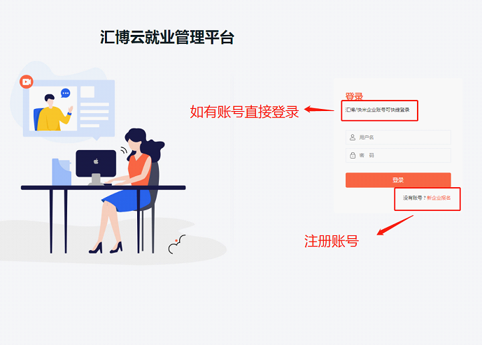 1.企业登录huibo.cn/YuZfu(电脑端登录),点击“企业报名”注册并发布职位。(“汇博招聘”会员可以直接使用账号密码进行登录,并同步平台已发布职位,勾选报名即可)