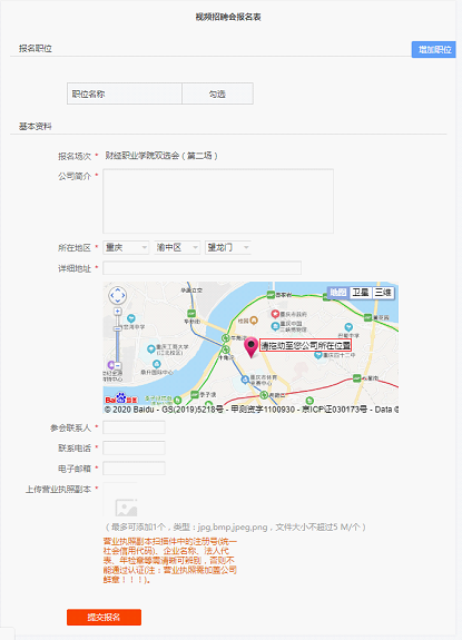 2、账号注册完成后,点击“增加职位”发布招聘岗位,并勾选提交报名。报名后,进入活动页面根据活动引导完成视频面试时间设置,高校审核通过后即可参与本次活动。审核通过时,将以短信通知到企业,企业在活动当天进入会场完成视频面试。